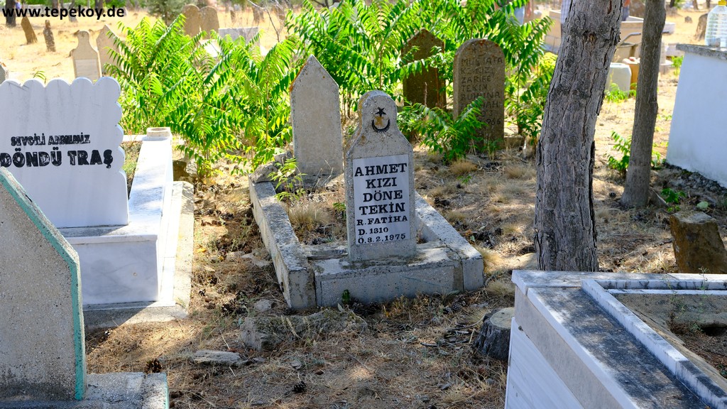 İsim: Döne Tekin (Yeşil) Aile içindeki rolü: Ahmet ve ???’in kızı, Hüseyin Tekin’in eşi Doğum tarihi:1894/95 (Eski tarihe göre 1310) Vefat tarihi: 03.02.1975 Yaşadığı yerler: Tepeköy Mezarı: Tepeköy Mezarlığı
